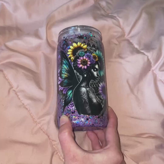 Has a beautiful quote and is slow flow. Comes with lid and straw