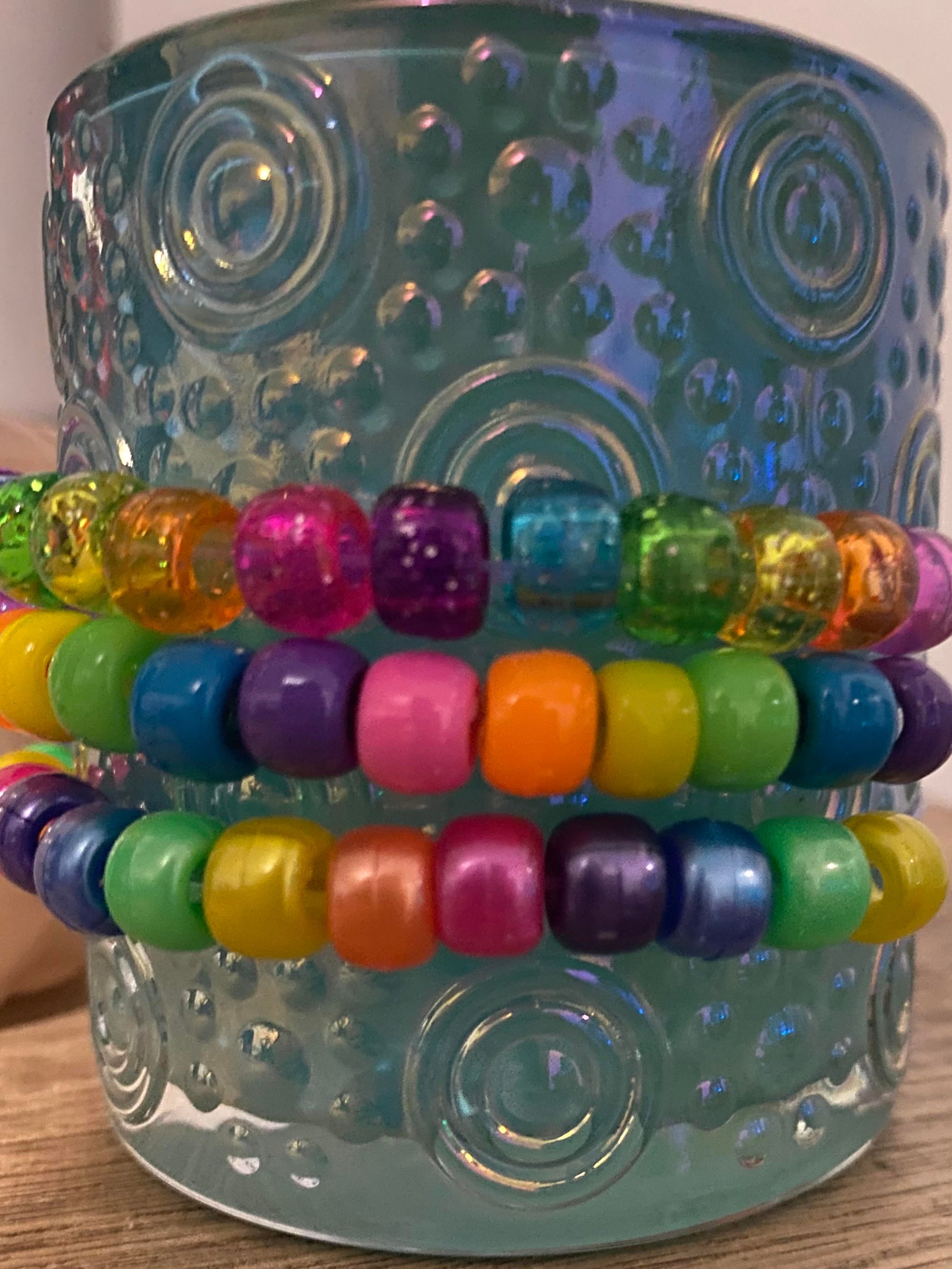 Add a pop of sparkle to your day with our Customizable Rainbow Bracelet Bundle, 3 vibrant bracelets, each with its own unique twist! Choose your favorite colors, glittery beads, and shiny accents to make a set that’s 100% you! 🌈💖